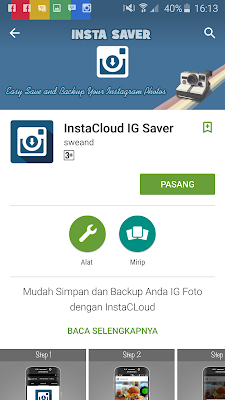Meskipun ada banyak cara dan aplikasi lainya yang dapat kita gunakan untuk menyimpan sebuah foto instagram ke smatphone , cara inilah yang menurut saya paling mudah dan efesien untuk dilakukan yaitu menggunakan sebuah aplikasi Instan Save. Ok tanpa lama - lama langsung saja berikut tutorialnya.- Seperti biasanya silahkan anda buka google play store , kemudian ketikan di menu pencarian dengan kata kunci "InstaCloud IG Saver" lalu klik enter. Nanti akan ada banyak aplikasi yang bernama insta save saja ( aplikasi urutan yang pertama )